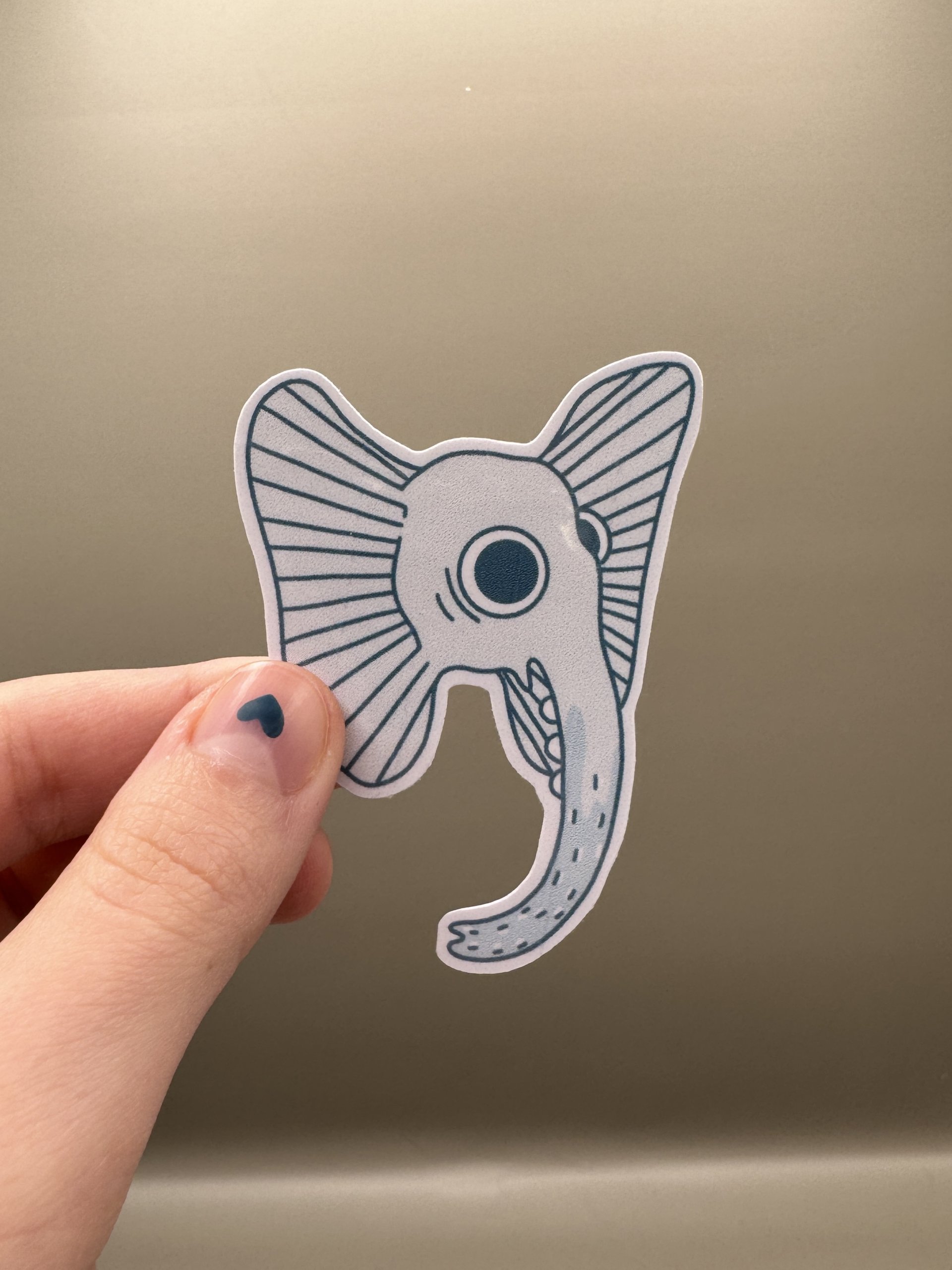 Handmade laminated vinyl sticker with elephant head design