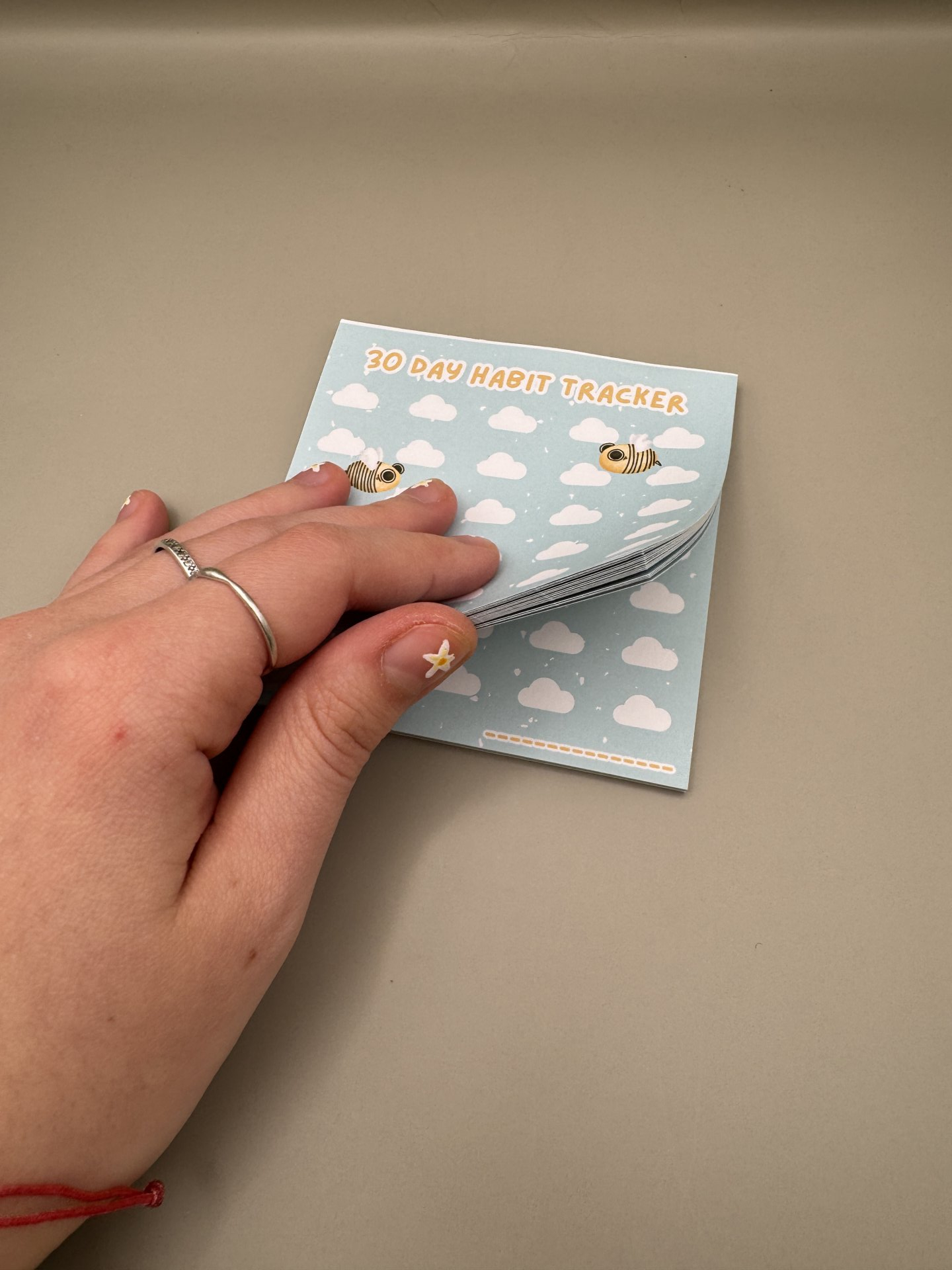 Notite lucrate manual, in stil de habit tracker cu nori si albinute.